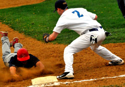Airborne Speedway's Joey Painter (14) slides in safe at the plate ahead of the tag. The Padres would split a doubleheader with the Cardinals. The first game would be close throughout the Padres would win 6-3 in nine innings. The Cardinals would get the early 1-0 lead in the second. Then the Padres would answer back with two in the third. Then the Cardinals would get 1 in the 4th to tie the game two. The two teams would trade runs in the 5th to make it 3-3. That's where the game would remain until the ninth when the Padres would open up the offense and the cardinals would have costly miscues and score three runs and get the 6-3 victory. Getting the win for the Padres would be Frank Brogna. Gane two would go to the cardinals. With the split on the day the Padres go to 1-3 and the Cardinals 3-1 on the season.Gallery