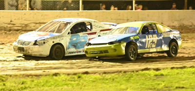 Nick Harden (125) and Jake Fountain (22) battle for the lead side by side in the Taylor Rental 4 Cylinders main event with Nick Harden holding on for the win. It would be the fifteenth race of the season at the Airborne Speedway and it would be the First Responder and Military Night as they would also honor the veterans from the area as the North Country Honor Flight would be honored before the race. Once the opening ceremony got over with the racing would take to the track and first up would be the heat races for the J+S Steel Sportsman Modified for there three heats and the winners were Jake Scarbrough, Tanner Forbes, and Mike Wright. Then next up would be the Hartson Total Opening Renegades with there two heats and the wins would be Richie Turner and Tyler Irwin. Next up would be the Northern Blacktopping Limited Sportsman Modified and the heat would be won by Scott Fitzgerald. Then to finish off the heats would be Taylor Rental 4 Cylinders with there three heats and the winners would be Glenn Engstrom, Nick Harden and Jake Fountain. First up for the main events would be the Limited Sportsman Modified for there fifteen lap affair and when the dust would settle Scott Fitzgerald would come across with his first win at the Airborne Speedway. Then next up the J+S Steel Sportsman Modified with there 25 lap event and it would go green to checker caution free and the winner would be Jake Scarbrough over a hard charging Michael Wright for the win. Then next up would be the Taylor Rental 4 Cylinders for there fifteen lap event and the winner would be Nick Harden over Bill Doner and Greg Zindler. Then to finish off the event it would be the Hartson Total Opening Renegades in there 25 lap event and the win would go Tylor Terry over hard chargers Richie Turner and Tyler Irwin to finish out the top three on the night. Next week at the Airborne Speedway it will be a special night as it is the annual back to school backpack give away night for all the local school kids. Gallery